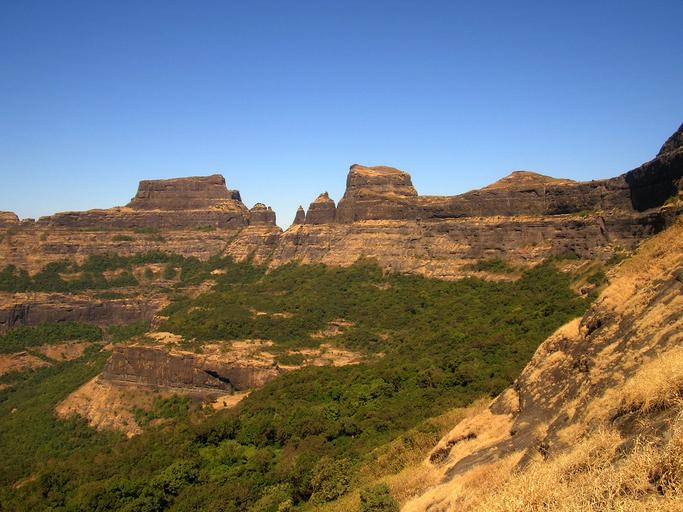 Keywords: india landscape scenic mountains valley ravine sky clouds formations outcrops forest trees nature outside country countryside