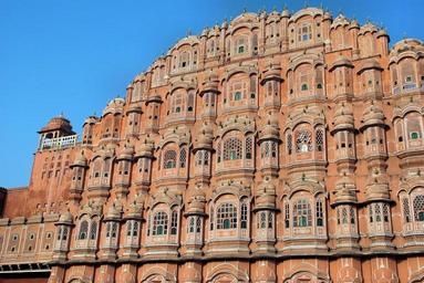 Keywords: india rajastan jaipur palace of winds pink sandstone facade architecture monument maharajah window