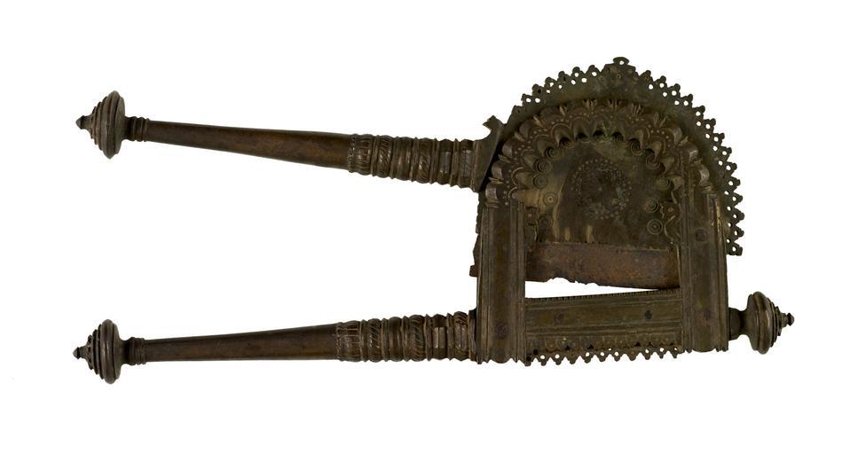 | Keywords: Indian - Betel-nut Cutter - Walters 54570.jpg This betel-nut cutter is a richly engraved horseshoe-shaped loop with a broad cutter and tapering round handles with knobs at the ends century 16 brass L 8 9/16 x W 3 9/16 in 21 8 x 9 cm accession number 54 570 10779 Lockwood de Forest Sale American Art Association 1922 no 69 Henry Walters city Baltimore Walters Art Museum Henry Walters Acquired by Henry Walters 1922 place of origin India Walters Art Museum license Mughal art in the Walters Art Museum Media contributed by the Walters Art Museum needs category review Areca nut cutters Kitchen utensils of India Lockwood de Forest Collection |