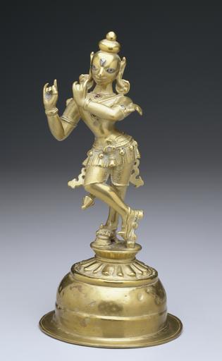 | Keywords: Indian - Krishna as the Cowherder with the Bamboo Flute - Walters 543005.jpg Krishna's music is irresistible to the milkmaids especially Radha The sweet notes of the flute according to the poem Gitagovinda are like the nectar of Krishna's kisses In general gods go barefoot the presence of wooden sandals is characteristic of art from the state of Orissa century 15 brass with silver and gemstone inlays cm 24 8 accession number 54 3005 12768 John and Berthe Ford Baltimore date and mode of acquisition unknown Walters Art Museum John Berthe Ford 2002 Desire and Devotion Art from India Nepal and Tibet in the John and Berthe Ford Collection The Walters Art Museum Baltimore; Birmingham Museum of Art Birmingham; Santa Barbara Museum of Art Santa Barbara; Albuquerque Museum Albuquerque 2001-2003 place of origin Orissa India Walters Art Museum license Sculptures from India in the Walters Art Museum Media contributed by the Walters Art Museum needs category review Sculptures of Orissa 15th-century statues in India Hindu art in the Walters Art Museum Dancing Krishna in sculpture |