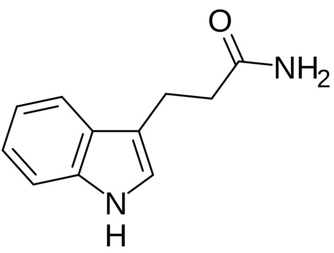 Keywords: Indolepropionamide.svg Chemical structure of indolepropionamide indole-3-propionamide Own 14 40 25 August 2016 UTC Ed Edgar181 Indoles Primary amides