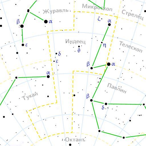 | Keywords: Indus constellation map ru lite.png en Indus constellation map on Russian ru Ка та созвездия Индейца на усском языке It was created by Denis Ibaev using the program PP3 on 16th December 2005 At http //pp3 sourceforge net PP3's homepage you also get the input scripts necessary for re-compiling the map The yellow dashed lines are constellation boundaries the red dashed line is the ecliptic and the shades of blue show Milky Way areas of different brightness The map contains all Messier objects except for colliding ones The underlying database contains all stars brighter than 6 5 All coordinates refer to equinox 2000 0 The map is calculated with the equidistant azimuthal projection the zenith being in the center of the image The north pole is to the top The horizontal lines of equal declination are drawn for 0° +10° +20° etc The lines of equal rectascension are drawn for all 24 hours Towards the rim there is a very slight magnification and distortion Constellations maps russian |