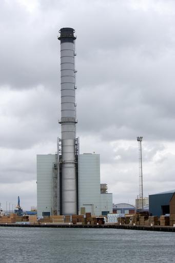 Keywords: industry industrial chimney flue tall structure architecture port docks harbour quay side wood planks dock