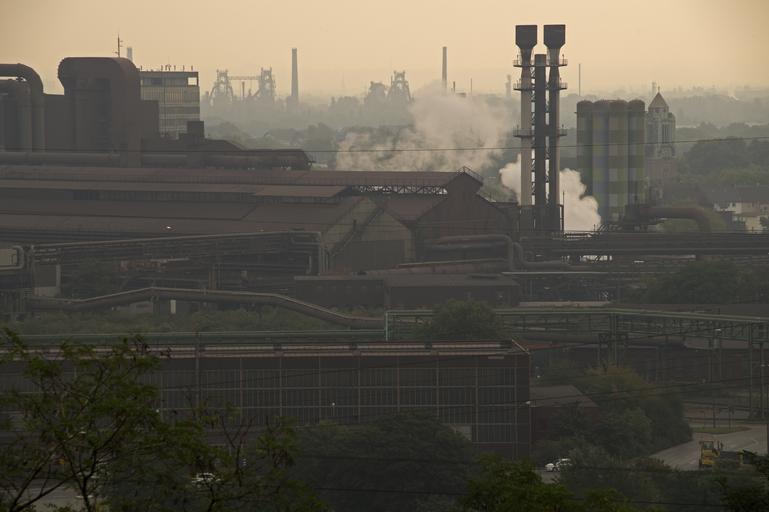 Keywords: industry steel metal factory ruhr area thyssen krupp tks ehb tstg steel mill blast furnace duisburg north rhine westphalia heavy industry germany tkse industrial plant hamborn exhaust gases huge environmental protection pollution chimney smoke