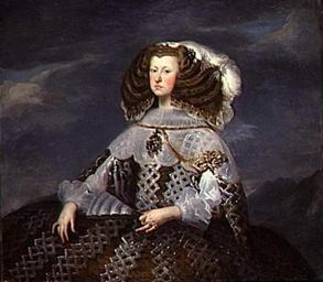 | Keywords: Infanta-anna1.jpg Portrait of female w Mariana of Austria 1634-1696 2half otherdate century 17 Oil on canvas cm 107 120 Versailles MV 3361 ; INV 949 ; B 812 Historique original de Vélasquez au musée du Prado à Madrid ; commandé par Anne d'Autriche pour ses appartements du Louvre en 1655 000PE006904 <gallery> Retrato de la reina doña María Ana de Austria from Musee national du chateau et des Trianons jpg Maria Anna de Austria Spain jpeg </gallery> PD-old-100 DEFAULTSORT Vermeer Mariana of Austria 1655c Mariana of Austria by Velazquez 17th-century portrait paintings in the Musée national du Château de Versailles 17th-century portrait paintings not categorised by year 17th-century fashion in Spain 17th-century oil on canvas paintings in France 17th-century oil portraits of women at half length 17th-century oil portraits of women at three-quarter length Baroque paintings in France Female hair fashion in art Portraits with fans Spanish paintings in France |