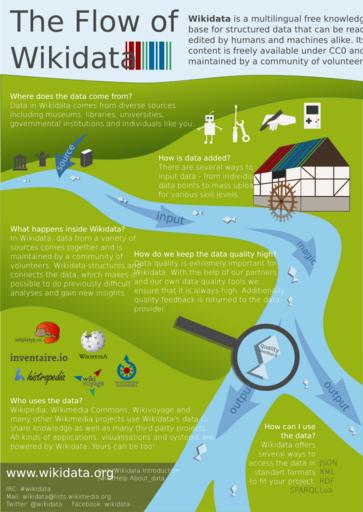 | Keywords: Infographic on the flow of Wikidata (for offWiki usage).svg en Infographic depicting the flow of data and quality feedback on Wikidata for offWiki usage 2016-07-21 own Charlie Kritschmar WMDE other versions cc-zero Wikidata information materials Information graphics Data flow diagrams Data visualization |