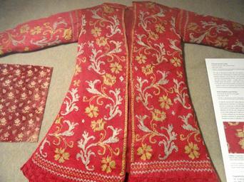 | Keywords: Informal woman's jacket, Italy, 1630-1650, knitted silk yarn - Patricia Harris Gallery of Textiles & Costume, Royal Ontario Museum - DSC09364.JPG Exhibit in the Patricia Harris Gallery of Textiles Costume Royal Ontario Museum Toronto Ontario Canada This exhibit is old enough so that it is in the public domain and photography was permitted in the museum I took this photograph and release it into the public domain Daderot 2011-11-20 15 45 53 Daderot cc0 cc0 Patricia Harris Gallery of Textiles Costume at the Royal Ontario Museum 17th-century textiles 17th-century fashion 1630s fashion 1640s fashion |