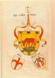 Keywords: Ingeram Codex 038.jpg File Coat of Arms of Pope Callixtus III svg Ingeram-Codex der ehemaligen Bibliothek Cotta <br/> pappa calixtus/tercius Alonso de Borja 1378-1458 Papst 1455- 58 <br/> eclesia <br/> eclesia s anc ti petri Die Wappenbücher Herzog Albrechts VI von Österreich Ingeram-Codex d ehem Bibliothek Cotta; hrsg v Charlotte Becher u Ortwin Gamber; Wien; Köln; Graz; 1986 Jahrbuch der Heraldisch-Genealogischen Gesellschaft Adler; Folge 3 Bd 12 Jg 1984/85; ISBN 3-205-05002-9 1459 Hans Ingeram and a so called Exempla-master Reproduction of a painting that is in the public domain because of its age PD-old-100 Exempla Meister-Reichsverfassung Coats of arms of Callistus III Pope |