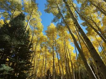 | Keywords: inner basin trail innerbasintrail inner basin trail no. 29 innerbasintrailno29 inner basin innerbasin san francisco peaks sanfranciscopeaks san francisco mountain sanfranciscomountain coconino national forest coconinonationalforest usfs flagstaff autumn fall colors fallcolors forest service forestservice forest outdoor plant tree foliage Fall colors on the Inner Basin Trail, September 23, 2016. The Inner Basin Trail ascends from Lockett Meadow into the caldera of the San Francisco Peaks, an extinct volcano and home of the tallest peaks in Arizona. The first 1.7 miles of the trail winds through the extensive aspen forest flanking the upper reaches of the Peaks, joining the Waterline Trail briefly before following a jeep road into the caldera. The trail starts at an elevation of 8665 feet, gaining approximately 1200 feet over 2 miles on its way into the Inner Basin. The trail continues another 2 miles, gaining an additional 600 feet or so to join up with the Weatherford Trail. Photo by George Jozens, September 23, 2016. Source: U.S. Forest Service, Coconino National Forest. See Lockett Meadow Campground and Inner Basin No. 29 for information about this area of the Peaks on the Coconino National Forest website. Fall colors on the Inner Basin Trail, September 23, 2016. The Inner Basin Trail ascends from Lockett Meadow into the caldera of the San Francisco Peaks, an extinct volcano and home of the tallest peaks in Arizona. The first 1.7 miles of the trail winds through the extensive aspen forest flanking the upper reaches of the Peaks, joining the Waterline Trail briefly before following a jeep road into the caldera. The trail starts at an elevation of 8665 feet, gaining approximately 1200 feet over 2 miles on its way into the Inner Basin. The trail continues another 2 miles, gaining an additional 600 feet or so to join up with the Weatherford Trail. Photo by George Jozens, September 23, 2016. Source: U.S. Forest Service, Coconino National Forest. See Lockett Meadow Campground and Inner Basin No. 29 for information about this area of the Peaks on the Coconino National Forest website. |
