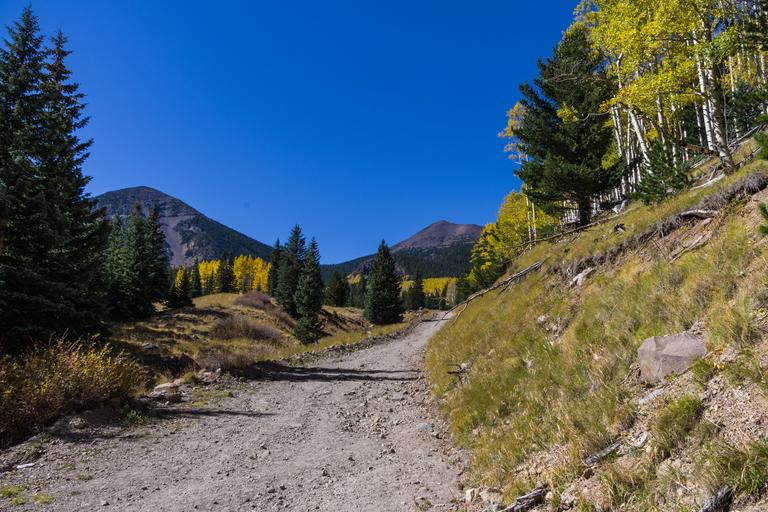 Keywords: arizona coconino national forest coconinonationalforest flagstaff ranger district flagstaffrangerdistrict forest service forestservice inner basin trail innerbasintrail inner basin trail no. 29 innerbasintrailno29 national forest nationalforest pentax k-1 pentaxk1 san francisco mountain sanfranciscomountain san francisco peaks sanfranciscopeaks usfs aspen aspens fall color fallcolor fall colors fallcolors fall foliage fallfoliage flagstaff forest hiking outdoors trail united states unitedstates outdoor hill landscape tree plant Fall color on Inner Basin Trail, October 5, 2016. Most trees are peaking or approaching peak color all along the Inner Basin Trail. Trees are approaching or at peak on the lower on Inner Basin Trail and in Lockett Meadow. A majority of the trees are at peak or past peak (and dropping leaves) on the upper part of the trail above Jack Smith Spring and in the Inner Basin. The Inner Basin Trail ascends from Lockett Meadow into the caldera of the San Francisco Peaks, an extinct volcano and home of the tallest peaks in Arizona. The first 1.7 miles of the trail winds through the extensive aspen forest flanking the upper reaches of the Peaks, joining the Waterline Trail briefly before following a jeep road into the caldera. The trail starts at an elevation of 8665 feet, gaining approximately 1200 feet over 2 miles on its way into the Inner Basin. The trail continues another 2 miles, gaining an additional 600 feet or so to join up with the Weatherford Trail. Photo by Deborah Lee Soltesz, October 5, 2016. Source: U.S. Forest Service, Coconino National Forest. See Lockett Meadow Campground and Inner Basin No. 29 for information about this area of the Peaks on the Coconino National Forest website. Fall color on Inner Basin Trail, October 5, 2016. Most trees are peaking or approaching peak color all along the Inner Basin Trail. Trees are approaching or at peak on the lower on Inner Basin Trail and in Lockett Meadow. A majority of the trees are at peak or past peak (and dropping leaves) on the upper part of the trail above Jack Smith Spring and in the Inner Basin. The Inner Basin Trail ascends from Lockett Meadow into the caldera of the San Francisco Peaks, an extinct volcano and home of the tallest peaks in Arizona. The first 1.7 miles of the trail winds through the extensive aspen forest flanking the upper reaches of the Peaks, joining the Waterline Trail briefly before following a jeep road into the caldera. The trail starts at an elevation of 8665 feet, gaining approximately 1200 feet over 2 miles on its way into the Inner Basin. The trail continues another 2 miles, gaining an additional 600 feet or so to join up with the Weatherford Trail. Photo by Deborah Lee Soltesz, October 5, 2016. Source: U.S. Forest Service, Coconino National Forest. See Lockett Meadow Campground and Inner Basin No. 29 for information about this area of the Peaks on the Coconino National Forest website. |