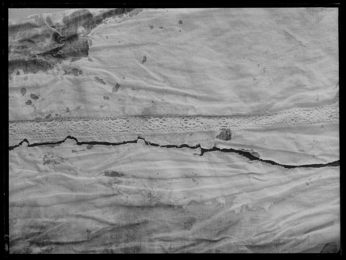 Keywords: Innerskjortan Lützen - Livrustkammaren - 60111.tif LSH artwork sv Skjortan är sydd av 3 stora stycken l ca 1425 mm som kan iakttagas frÃ¥n krage till nederfÃ¥ll VÃ¥dbredden är 920 mm som kan konstateras frÃ¥n V nedre sprundet där staden gÃ¥r till fällsömmen i H sida Den smala ökningsvÃ¥den pÃ¥ H sida är 220 + 220 mm bred 440 mm H framstyckspartiet har spÃ¥r av skarvsömmen stadkanten är 500 mm lÃ¥ng utefter H sidsöm pÃ¥ framstycket som är en kastfÃ¥ll - sydd frÃ¥n avigsidan kastad stad mot stad 10 V-vända kaststygn / cm Intill denna söm har en rektangulär lucka rivits ut 190 x 40 mm Ärmens spjäll och andra fÃ¥llar är fällsömmar med 9 stygn / cm Spetsarna är kastade med ca 6 stygn / cm <br/>Av kragen finns en 230 mm lÃ¥ng flisa utefter kantfÃ¥llen nedtill Spetsen är delvis lossliten - sitter fast blott 50 mm och är myckt blodig L ca 130 mm Kragen är 60 mm hög och dubbelvikt <br/>Skjortan är inveckad med täta rynkor i kragen 20 rynkor / cm och sydd med 10 kaststygn och 7 efterstygni garneringssömmen / cm närmast rynkorna och 6 stygn ytterst Spetsen är 50 resp 20 mm hög <br/>Manschetten är 48 mm bred Sprundet är bevarat 70 mm lÃ¥ngt C a 14 rynkor / cm och 8 resp 6 garneringsstygn / cm Spetsen är fastkastad med ca 8 stygn Ã¥t V med vitt lingarn <br/>KastfÃ¥llen i skjortans nederkant är 15 mm bred och nedkastad med ca 9 stygn / cm H-vända med samma trÃ¥dsom skjortans - Varpen otvinnad inslaget ev svagt V-tvinnat <br/>Ett litet stycke av skjortan utgöres av en smal mycket blodig remsa frÃ¥n ena ärmen med kvarsittandespetsgarnering och en liten rest av manschetten Härav kan man fastställa ärmlängden till ca 590 mm dÃ¥sömmen mot skjortans bÃ¥lparti bevarats knappt 80 mm PÃ¥ detta stycke finns ca 140 mm kvar av aelsömmen som är en fällsöm som smalnar mot axeln <br/>Skjortans minsta smala remsa är ett stycke av V ärm som passar i den hackiga konturen pÃ¥ ärmens minstblodia parti med den mellersta myckt blodiga spetsen Detta stycke har sÃ¥väl ett stycke av skjortansaxelsöm 140 mm som lagts omlott i en sneddad söm mellan 7-14 mm bred Garneringssömmen sydd med 7stygn / cm I fortsättningen av den blott knappt 30 mm breda remsan med spetsen centralt nedtill sitteren 5 mm bred flisa av manschetten kvar med del av spets ocksÃ¥ Blott ca 480 mm av spetsens längd finns dock kvar här de översta 110 mm är bortrivna Av V ärms V axelparti finns av framstycket ett revat parti som överst har den vikta fÃ¥llen som är 145mm lÃ¥ng Efter 30 mm nerÃ¥t är en med sömmen parallell reva ca 90 mm lÃ¥ng sÃ¥ att blott en 15 mm bredtunga hÃ¥ller samman det snedrivna stycket som tillkommer med en längd av 170 mm och höjd av 130 mm Bakstycket som har en längd av 135 mm vid fÃ¥llen mot framstycket är ungefär jämnbrett med ca 110 mmbredd och nederst 240 mm lÃ¥ngt <br/>Gemensamt <br/>Av linnelärft med trÃ¥dantal 43 varptrÃ¥dar x 44 inslagstrÃ¥dar / cm2 sammanfogad av framstycke bakstycke b 1470 mm sidstycke samt ärmar ärmspjäll krage och ärmlinningar I sidorna har nertill ämnats ca 510mm höga sprund staden är synlig här i v sida Skjortans bÃ¥lparti är rakt tillskuret Nedtill harskjortan fÃ¥llats upp med en 15-20 mm bred fÃ¥ll sydd med 5 à 6 stygn/cm av H-tvinnat lingarn Derektangulärt tillskurna ärmarna blott den v nÃ¥gorlunda bevarad är 610 mm lÃ¥nga och 460 mm breda ochgarnerade med 3 rader knappt 20 mm breda vita knypplade mellanspetsar pÃ¥sydda med ca 100 mm mellanrum Ärmarna är fastsydda i skjortans sidsöm pÃ¥ v sida där staderna stöta mot varandra I h sida har manklippt upp ett 390 mm lÃ¥ngt sprund för ½ ärmbredden 230 mm + spjäll 160 mm 390 mm Nedanförärmstycket har alltsÃ¥ ett spjäll med ca 160 mm sida sytts fast Ärmarna är alltsÃ¥ isydda helt normalt och inte som Anna Maja Nylén förmodat enligt en mer egendomlig konstruktion sÃ¥ att ärmen skulle nÃ¥ ändafram till halslinningen <br/>Axelsömmarna är i det allra närmaste helt raka de yttersta 165 mm Man har blott vikt ner fÃ¥llarna nÃ¥gotbredare mot axeln än mot halsen ca 5 mm differens Härefter har ll Ã¥terstÃ¥ende vidd rynkats in i dendubbelvikta knappt 70 mm hÃ¥ga kragen som är ca 400 mm lÃ¥ng sÃ¥ att frampartierna av skjortorna fördelatspÃ¥ kragens främre decimeterlÃ¥nga stycken medan ryggstycket rynkats i kragens bakre 200 mm <br/>Halssprundet är klippt upp vertikalt i framstycket l minst 270 mm synligt i h sida därspetsgarneringen bevarats en 15 mm bred uddspets Dessutom kan pÃ¥pekas att sprundet ej placerats heltsymmetriskt mitt pÃ¥ skjortans framstycke utan med ett par centimeters förskjutning Ã¥t h dÃ¥ det klipptsca 600 mm frÃ¥n v sidsöm och 230 + 350 580 mm frÃ¥n h sida Dekor av en 15 mm bred uddspets rapport 20mm Överst pÃ¥ kragen är denna typ av spets fastsydd för att stÃ¥ upp som en avslutande kant PÃ¥ kragensutsida är kant i kant med den smala spetsen och nedÃ¥t en bredare uddspets fastsydd Denna är 50 mm bredoch har en rapport av 22 mm motivet pÃ¥minner om solfjädrar <br/>Kragens garneringssömmar sydda med efterstygn i 2 parallella rader med 7 stygn/cm och 16 rynkor avskjortan / cm Spetsen är fastkastad med 7 stygn / cm med H-tvinnat lingarn <br/>H axelsöm är en fällsöm lik den pÃ¥ skjorta C 14-3 mm bred och 165 mm lÃ¥ng Den är sydd med 3 sömmar med eftersygn Av v sidostycke ryggstycket framgÃ¥r att skjortans sidosprund sannolikt varit ca 510 mm lÃ¥ngt Isjälva sömmen är plagget emellertid uppfläkt Den V ärmen som är rel bra bevarad är nedtill vid linningen som klippts upp oerhört blodig Denhar ett ca 70 mm lÃ¥ng ärmsprund - sönderrivet och manschetten är ca 45 mm hög hur lÃ¥ng kan ej avgöras En 17 mm bred mellanspets med hjulmotiv rapport 25 mm har som garnering sytts pÃ¥ ärmarna i 3rader ända uppifrÃ¥n axelsömmen och ned till ärmlinningen Ã…tgÃ¥ng till