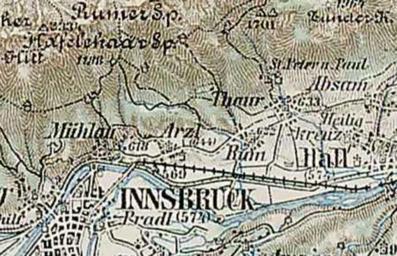 Keywords: Innsbruck - 29-47 - Hall, Innsbruck Nordost.png 3rd Military Mapping Survey of Austria-Hungary - Innsbruck; detail Northeast of Innsbruck http //lazarus elte hu/hun/moterkep htm - László ZENTAI Innsbruck - 29-47 jpg 50 1898/1905 Military mapping authority of Austria-Hungary cutout Innsbruck - 29-47 jpg PD-old Details from 3rd Military Mapping Survey of Austria-Hungary maps Old maps of Innsbruck Historical maps of the Inn watercourse system Inn River in Innsbruck Inntalkette Hafelekar Pradl Innsbruck Mühlau Innsbruck Arzl Innsbruck Thaur Rum Tirol Absam Hall in Tirol MARTHA-Dörfer |