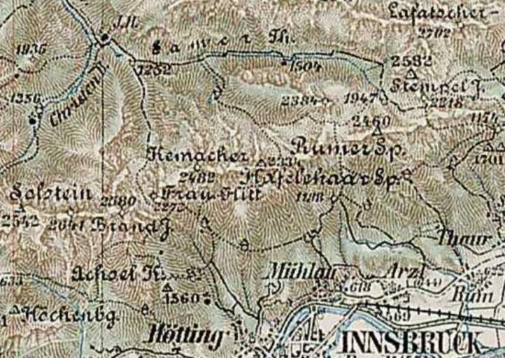 Keywords: Innsbruck - 29-47 - Nordkette und Samerthal.png 3rd Military Mapping Survey of Austria-Hungary - Innsbruck; detail Nordkette und Samerthal http //lazarus elte hu/hun/moterkep htm - László ZENTAI Innsbruck - 29-47 jpg 50 1898/1905 Military mapping authority of Austria-Hungary cutout Innsbruck - 29-47 jpg PD-old Old maps of Innsbruck Details from 3rd Military Mapping Survey of Austria-Hungary maps Hötting Mühlau Innsbruck Arzl Innsbruck Inntalkette Großer Solstein Hafelekar |