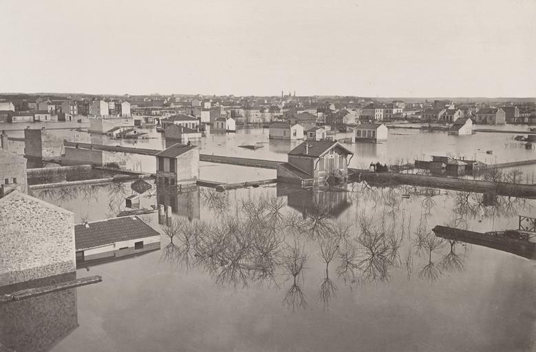 | Keywords: Inondations de Fevrier 1876 - Alfortville 1.jpg Photograph Creator Hippolyte-Auguste Collard en City Police Préfecture Paris en Inondations de Fevrier 1876 Alfortville Elevated view over flooded town some buildings submerged to their roofs tree tops visible above water depicted people depicted place between 1876 1880 albumen silver 66 5 x 57 cm accession number H87 208/53 SLVIC-digitalimage 273521 H87 208/53 Album with leather covered cardboard covers 148 cardboard leaves holding 69 albumen silver print photographs on one side of leaf only Individual titles and official photographer stamped below image Title embossed on front cover with seal of the City of Paris in gilt ink ; title also on spine Label inside front cover reads Presented to the Public Library c Victoria on the eighth day of April 1881 by the Government of France Hand inscribed note on first page of album upper left Presented April 8th 1881 illegible Photographs various sizes 38 x 27 cm and smaller <br> Album was designed to show the use of photography in the solving of crimes and disasters Gift of the French Government possibly following the International Exhibition of 1880 <br> Official photographer's stamp on each page lower left some images dated 1876 and 1880 One photographer identified Hippolyte-Auguste Collard Institution State Library of Victoria object history exhibition history credit line Gift; Government of France; 1881 Information field Author Préfecture de police de Paris Service Photographique PD-100 Ville de Paris Préfecture de police Seine River in Alfortville History of Alfortville |