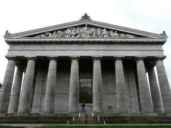 Keywords: input imposing enormous gate columnar walhalla memorial hall of the fallen donaustauf ludwig i building large powerful impressive architecture view danube hill mountain outlook