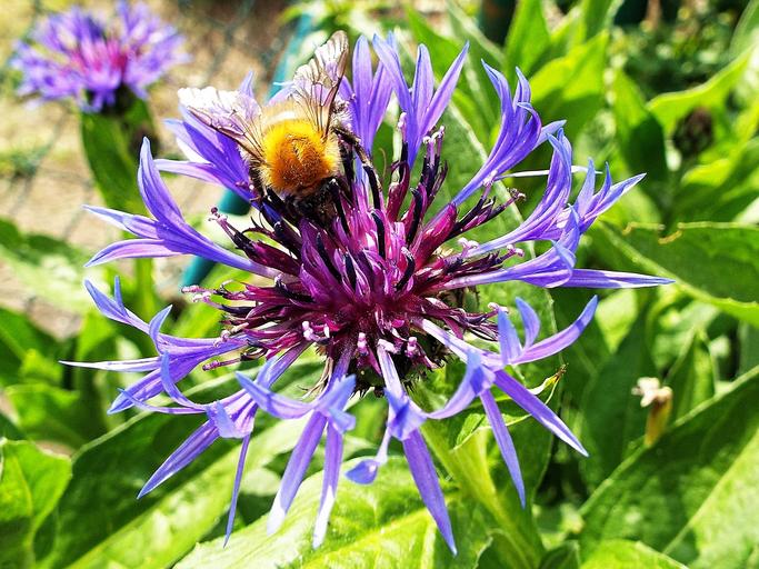 Keywords: insect cornflower summer garden blue bumble-bee flower