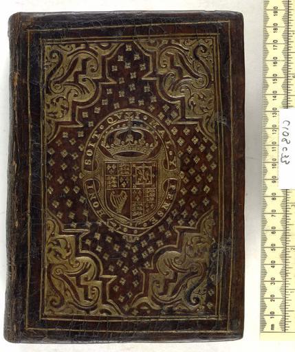 | Keywords: Institutions of Christian Religion - Upper cover (c108c33).jpg Style Armorial Cornerpiece Semis background of small tools; Caption Upper cover; Colour Brown; Edge Unspecified exhibition history Decorative Technique Tooled in gold; Cover Material Calf Unspecified object history Text 1606; London; Stuart coat of arms object type Cc-zero place of creation Binding England place of discovery To research armorials see British Armorial Bindings Database sponsored jointly by the Bibliographical Society and the University of Toronto http //armorial library utoronto ca British Library image http //www bl uk/catalogues/bookbindings/LargeImage aspx RecordId 020-000000942 ImageId ImageId 40076 Copyright BL Institutions of Christian Religion Uploaded with GWToolset Institutions of Christian Religion - Upper cover c108c33 http //www webarchive org uk/bldatasets/bindings/4579_4 jpg Bookbinding 17th-century bookbinding British Library Bookbindings |