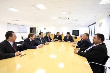 | Keywords: indoor room Os parlamentares que compõem a Mesa Executiva da Assembleia Legislativa fizeram uma visita de cortesia ao governador Beto Richa no final da tarde desta segunda-feira (7), no Palácio das Araucárias. O presidente da Assembleia, deputado Valdir Rossoni (PSDB), esteve acompanhado dos deputados Artagão Júnior (PMDB), 1º vice-presidente; Augustinho Zucchi (PDT), 2º vice-presidente; Plauto Miró (DEM), 1º secretário; Reni Pereira (PSB), 2º secretário; Reinhold Stephanes Jr. (PMDB), 3º secretário; Fábio Camargo (PTB), 4º secretário; e Gilson de Souza (PSC), 5º secretário. Segundo Rossoni, o encontro foi um agradecimento da Mesa Executiva ao apoio recebido do Governo do Estado no processo de mudanças promovidas na Assembleia Legislativa nos últimos dias. “Estamos agradecendo ao governador Beto Richa pelo apoio dado às profundas mudanças que estamos fazendo na Assembleia. Apresentamos um levantamento dos problemas e o governador prontamente nos atendeu e correspondeu aos nossos pedidos.” Como sinal de austeridade e transparência, o governador Beto Richa destacou o novo momento que o Parlamento paranaense vive e reprovou a existência de escutas ilegais na Assembleia, descobertas no último sábado (5). “É uma situação lamentável. Por sorte foi detectado e corrigido. Estas mudanças que estão acontecendo correspondem àquilo que a sociedade paranaense espera. E os deputados que dirigem a Casa nesta visita reforça esta boa relação entre Executivo e Legislativo. E assim deve ser, com diálogo e cooperação”, disse. Foto: Nani Gois / Assembleia Legislativa do Paraná Os parlamentares que compõem a Mesa Executiva da Assembleia Legislativa fizeram uma visita de cortesia ao governador Beto Richa no final da tarde desta segunda-feira (7), no Palácio das Araucárias. O presidente da Assembleia, deputado Valdir Rossoni (PSDB), esteve acompanhado dos deputados Artagão Júnior (PMDB), 1º vice-presidente; Augustinho Zucchi (PDT), 2º vice-presidente; Plauto Miró (DEM), 1º secretário; Reni Pereira (PSB), 2º secretário; Reinhold Stephanes Jr. (PMDB), 3º secretário; Fábio Camargo (PTB), 4º secretário; e Gilson de Souza (PSC), 5º secretário. Segundo Rossoni, o encontro foi um agradecimento da Mesa Executiva ao apoio recebido do Governo do Estado no processo de mudanças promovidas na Assembleia Legislativa nos últimos dias. “Estamos agradecendo ao governador Beto Richa pelo apoio dado às profundas mudanças que estamos fazendo na Assembleia. Apresentamos um levantamento dos problemas e o governador prontamente nos atendeu e correspondeu aos nossos pedidos.” Como sinal de austeridade e transparência, o governador Beto Richa destacou o novo momento que o Parlamento paranaense vive e reprovou a existência de escutas ilegais na Assembleia, descobertas no último sábado (5). “É uma situação lamentável. Por sorte foi detectado e corrigido. Estas mudanças que estão acontecendo correspondem àquilo que a sociedade paranaense espera. E os deputados que dirigem a Casa nesta visita reforça esta boa relação entre Executivo e Legislativo. E assim deve ser, com diálogo e cooperação”, disse. Foto: Nani Gois / Assembleia Legislativa do Paraná |