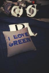 Keywords: interior design decoration decor pillow green blue gray bed love gift homeware