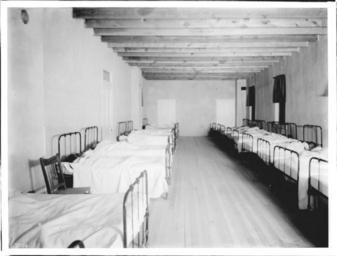 | Keywords: Interior of a dormatory at a Navajo school, Tohatchi, New Mexico, ca.1900 (CHS-3209).jpg en <br> Interior of a dormatory at a Navajo school Tohatchi New Mexico ca 1900 Photograph of the interior of a dormitory at a Navajo school Tohatchi New Mexico ca 1900 About 16 brass beds line opposite walls in a long narrow room with a wood plank floor and a wood beam ceiling A sleeping child is under the light-colored blanket of each bed A wooden chair sits between two beds at left Three wood doors and three windows with drapes are also visible Call number CHS-3209 Photographer James George Wharton Filename CHS-3209 Coverage date circa 1900 Part of collection California Historical Society Collection 1860-1960 Format glass plate negatives Type images Geographic subject city or populated place Tohatchi Indian Reservation; Gallup Repository name USC Libraries Special Collections Accession number 3209 Archival file chs_Volume93/CHS-3209 tiff Part of subcollection Title Insurance and Trust and C C Pierce Photography Collection 1860-1960 Repository address Doheny Memorial Library Los Angeles CA 90089-0189 Geographic subject country USA Format aacr2 2 photographs glass photonegative photoprint b w ; 17 x 22 cm Rights Digitally reproduced by the USC Digital Library; From the California Historical Society Collection at the University of Southern California Subject adlf tribal areas Repository email specol usc edu Contributing entity California Historical Society Date created circa 1900 Publisher of the digital version University of Southern California Libraries Format aat photographic prints; photographs Geographic subject state New Mexico Subject file heading Indians -- Navajo Legacy record ID chs-m15872; USC-1-1-1-13946 Access conditions Send requests to address or e-mail given Phone 213 821-2366; fax 213 740-2343 Geographic subject county McKinley Subject lcsh Indians of North America; Navajo Indians; Dwellings; Children; Schools Subject Navajo Indians circa 1900 date created James George Wharton http //digitallibrary usc edu/cdm/ref/collection/p15799coll65/id/14588 PD-old-70-1923 Images from USC Digital Library uploaded by Fæ California Historical Society Collection 1860-1960 Glass plate negatives Navajo history Photographs by George Wharton James |
