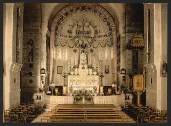 Keywords: Interior of Notre Dame d'Afrique, Algiers, Algeria WDL2456.png Artwork ru Внут еннее уб анство собо а от -Дам д'Аф ик г Алжи Алжи fr Intérieur de Notre Dame d'Afrique Alger Algérie en Interior of Notre Dame d'Afrique Algiers Algeria zh 洲 母院内部,阿尔及尔,阿尔及利亚 pt Interior da Notre Dame d'Afrique Argel Argélia ar القسم الداخلي من نوتردام أفريقيا، الجزائر، الجزائر ru Этот цветной снимок относится к се ии Люди и виды Алжи а входящей в каталог компании Дет ойт Фотог афик Кампани а нем изоб ажен собо от -Дам де Аф ик основанный в 1872 году по указу ка динала Ша ля Лавиже и основателя миссионе ского о дена Бого одицы Аф иканской или Белые отцы и сп оекти ованный ф анцузским а хитекто ом Ф омаже В издании Бедеке а 1911 года <i> С едиземномо ье </i>собо описывается как це ковь и место паломничества для больных и мо еплавателей Це емония благословения мо я сове шавшаяся священниками каждое воск есенье в 3 30 на те асе пе ед це ковью п ивлекала больше количество з ителей; с этой те асы отк ывается вид на побе ежье вплоть до Пуэнт-Пескад Дет ойт Фотог афик Кампани была основана в конце 90-х годов XIX века как издательская компания выпускающая фотоп одукцию бизнесменом из Дет ойта Уильямом А Ливингстоном младшим совместно с фотог афом и фотоиздателем Эдвином Г Хаше ом Они п иоб ели эксклюзивные п ава на использование п оцесса фотох оми ования изоб етенного в Швейца ии Фотох оми ование использовалось для п ев ащения че но-белых фотог афий в цветные и последующей печати фотог афий методом фотолитог афии Благода я этому п оцессу стало возможно массовое п оизводство цветных отк ыток снимков и альбомов для п одажи на аме иканском ынке <br>Алта и; Католические це кви fr Cet impression photochrome Vues de personnes et sites en Algérie provient du catalogue de la Detroit Photographic Company Elle représente la cathédrale de Notre Dame d'Afrique qui a été créée en 1872 par le cardinal Charles Lavigerie l'initiateur de l'Ordre des Missionnaires Notre-Dame d'Afrique ou Pères Blancs et conçue par l'architecte français Fromageau L'œuvre de Baedeker en 1911 <i>The Mediterranean La Méditerranée </i>décrit la cathédrale comme une église de pèlerinage pour les personnes malades et les marins De la terrasse en face de l'église où la bénédiction de la mer par le clergé chaque dimanche à 15h30 attire de nombreux spectateurs nous remontons la côte jusqu'à la Pointe Pescade La Detroit Photographic Company est une entreprise d'édition photographique créée à la fin des années 1890 par un homme d'affaires et éditeur de Détroit William A Livingstone Jr et le photographe et photo-éditeur Edwin H Husher Ils obtinrent les droits exclusifs d'utilisation du processus suisse Photochrome pour la conversion de photographies noir et blanc en images couleur ainsi que leur impression par photolithographie Ce processus permit la production en série de cartes postales gravures et albums en couleur vendus sur le marché américain <br>Autels; Églises catholiques en This photochrome print is from Views of People and Sites in Algeria in the catalog of the Detroit Photographic Company It depicts the Cathedral of Notre Dame d Afrique which was established in 1872 under Cardinal Charles Lavigerie the initiator of the Missionary Order of Our Lady of Africa or White Fathers and designed by the French architect Fromageau Baedeker s 1911 <i>The Mediterranean </i>described the cathedral as a pilgrimage-church for sick persons and mariners From the terrace in front of the church where the blessing of the sea by the clergy every Sunday at 3 30 attracts many spectators we survey the coast as far as the Pointe Pescade The Detroit Photographic Company was launched as a photographic publishing firm in the late 1890s by Detroit businessman and publisher William A Livingstone Jr and photographer and photo-publisher Edwin H Husher They obtained the exclusive rights to use the Swiss Photochrom process for converting black-and-white photographs into color images and printing them by photolithography This process permitted the mass production of color postcards prints and albums for sale to the American market <br>Altars; Catholic churches zh 这张彩色照片出自底特律摄影公司目录中 阿尔及利亚人物和景点风景 部分 照片拍摄的是 洲 母 殿,于 1872 年 红衣主教查尔斯·拉维日里( 洲 母传教会 苏丹后宫 的创始人或称为 白人教父 )的领导下建立,其设计师为法国建筑师弗马诺 德克尔 1911 年的 <i> 中海 </i>将该大教堂描述为: 病人和水手的 教堂 教堂前 的平台上,每个周日下午 3 时 30 分由牧师举行的海洋祈福吸引了众多观众,我们 虑到 至 Pointe Pescade 的海岸 底特律摄影公司是 19 世纪 90 年代 成立的 家摄影出版公司,创办人是底特律商人兼出版