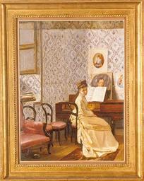 | Keywords: Interior Santafereño by Ramón Torres Méndez.jpg en Santa Fean interior c 1874 oil cm 35 25 4 Institution http //www museonacional gov co/htm/ev_collections_det php id 1875 PD Colombia other versions Ramón Torres Méndez 19th-century genre paintings 19th-century oil paintings of sitting women at full length 19th-century paintings of musicians Genre paintings from Colombia Paintings of musical instruments Paintings of women from Colombia Women in rooms in art | ||||