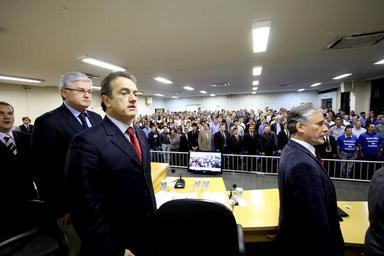Keywords: Deputados estaduais em Cascavel durante a 2ª sessão itinerante da Assembleia Legislativa do Paraná. Foto: Nani Gois