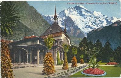 | Keywords: Interlaken Kursaal mit Jungfrau.jpg nl Een briefkaart van Interlaken Pre WW II could even be pre WW I Postcard Photoglob Zurich before WW II author other versions Custom license marker 2016 10 02 Anonymous-EU Postcards of Switzerland Kursaal Interlaken Historical images of Interlaken Historical images of Jungfrau |