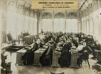 Keywords: International Conference Regarding the Use of Esperanto WDL11591.png Artwork ru еждуна одная конфе енция по использованию эспе анто fr Conférence internationale sur l'utilisation de l'espéranto en International Conference Regarding the Use of Esperanto zh 关于使用世界语的国际会议 pt Conferência Internacional sobre o Uso do Esperanto ar مؤتمر عالمي عن استخدام الاسبرانتو ru Эспе анто является искусственным языком кото ый был создан польским в ачом-окулистом Людвиком Лаза ем Заменгофом 1859 1917 гг в 1887 году опубликовавшим б ошю у на усском польском ф анцузском и немецком языках В ней он описал эспе анто и п едложил его в качестве легко доступного вто ого языка   еждуна одное эспе анто-движение возникло в 90-х годах XIX века и достигло кульминации во в емя п оведения пе вого всеми ного конг есса гово ящих на языке эспе анто в 1905 году После Пе вой ми овой войны в Лиге аций аз абатывались планы по использованию эспе анто в качестве абочего языка и екомендации к его изучению в школах но Ф анция наложила вето на эти п едложения Лига финанси овала междуна одную конфе енцию по использованию эспе анто кото ая состоялась в Женеве 18 20 ап еля 1922 года а данном снимке изоб ажена пе вая сессия конфе енции У Лиги аций было 2 абочих языка английский и ф анцузский Эта фотог афия находится в а хивах Лиги пе еданных в 1946 году О ганизации Объединенных аций и х анящихся в штаб-ква ти е ОО в Женеве В 2010 году они были включены в еест п ог аммы Ю ЕСКО Память ми а <br>Эспе анто; Г упповые по т еты; Лига аций; Память ми а; По т етные фотог афии fr L'espéranto est une langue construite inventée par l'ophtalmologiste polonais Ludwik Lazar Zamenhof 1859 1917 qui publia en 1887 un opuscule en russe en polonais en français et en allemand décrivant l'espéranto et le proposant comme une seconde langue facile à apprendre Un mouvement international espérantophone se développa dans les années 1890 aboutissant au premier Congrès mondial de l'espéranto en 1905 Après la Première Guerre mondiale la Société des Nations envisagea d'adopter l'espéranto comme langue de travail et de recommander son enseignement dans les écoles mais la France opposa son véto à de telles propositions La Société parraina une conférence internationale sur l'utilisation de l'espéranto qui se déroula à Genève du 18 au 20 avril 1922 La photographie présentée ici montre la session d'ouverture de cette conférence La Société des Nations avait deux langues de travail  l'anglais et le français La photographie provient des archives de la Société des Nations qui furent transférées aux Nations Unies en 1946 et qui sont désormais conservées à l'Office des Nations Unies à Genève Ces archives furent inscrites au Registre de la Mémoire du monde de l'UNESCO en 2010 <br>Espéranto; Portraits de groupe; Société des Nations; Mémoire du monde; Portraits photographiques en Esperanto is a synthetic language devised by Polish eye doctor Ludwik Lazar Zamenhof 1859 1917 who in 1887 published a pamphlet in Russian Polish French and German describing Esperanto and proposing it as an easy-to-learn second language An international Esperanto movement developed in the 1890s culminating in the first world congress of Esperanto speakers in 1905 After World War I the League of Nations considered adopting Esperanto as a working language and recommending that it be taught in schools but proposals along these lines were vetoed by France The League sponsored an international conference regarding the use of Esperanto which took place in Geneva on April 18 20 1922 This photograph shows the opening session of the conference The League of Nations had two working languages English and French The photograph is from the archives of the League which were transferred to the United Nations in 1946 and are housed at the UN office in Geneva They were inscribed on the UNESCO Memory of the World register in 2010 <br>Esperanto; Group portraits; League of Nations; Memory of the World; Portrait photographs zh 世界语是 种人工语 (译注:又称人 语 ),由波兰 科医生路德维克·拉扎鲁·柴门 夫(Ludwik Lazar Zamenhof,1859-1917 年)发明,他于 1887 年以俄语 波兰语 法语和德语出版了 介绍世界语的小册子,并建议将它用 单易学的第二语 19 世纪 90 年代国际世界语运动不断发展, 终第 届说世界语 全球大会于 1905 年召 战后,国际联盟 虑采用世界语 为工 语 ,并建议 学校教授世界语,但按照这类 路提出的许多建议 被法国否决 1922 年 4 18 至 20 日,国际联盟 日内瓦主办了关于使用世界语的国际会议 这张照片显示了会议的 幕式 国际联盟 两种工 语 :英语和法语 此照片出自国际联盟的档案,这批档案于 1946 年转交给了联合国, 存 联合国日内瓦办事处 2010 年这批档案入 联合国教科文组织 UNESCO 的 世界记忆名录 <br>世界语; 合影照片; 国际联盟; 世界记忆; 肖像照片 pt O