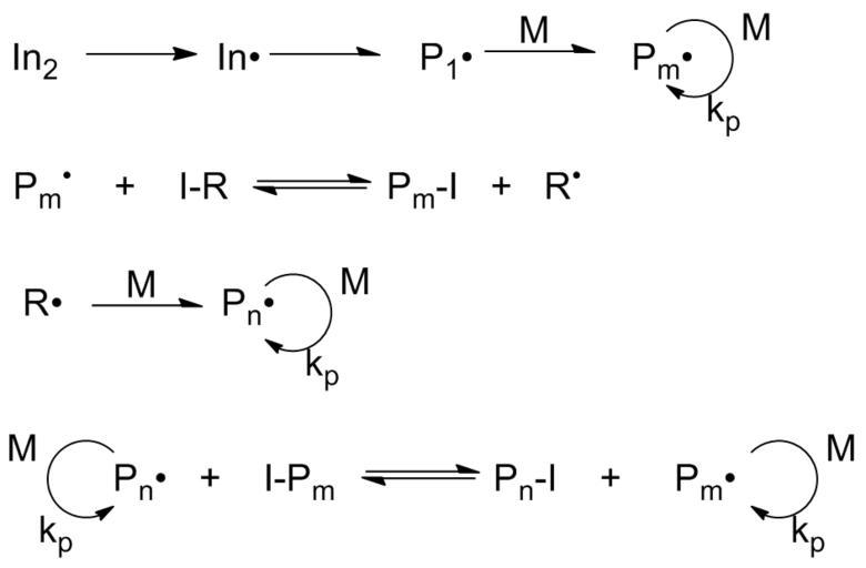 Keywords: Iodine transfer RP.png en Illustration of iodine transfer polymerization own Bruintje71 2010-06-06 Living polymerization