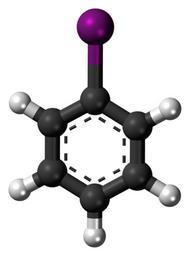 | Keywords: Iodobenzene 3D ball.png Ball-and-stick model of the iodobenzene molecule a compound consisting of a benzene ring substituted with an iodine atom Color code 505050 Carbon C black<br> F0F0F0 Hydrogen H white<br> 961496 Iodine I purple<br> 2011-08-02 own DS Visualizer Jynto talk Space-filling version cc-zero Images by Jynto Ball-and-stick models Iodobenzene |