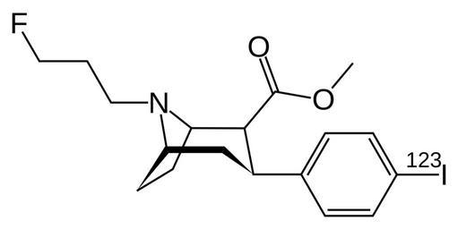 | Keywords: Ioflupane (123I).svg Skeletal formula of ioflupane <sup>123</sup>I Created using http //www acdlabs com/download/chemsk html ACD/ChemSketch 10 0 and Inkscape Own 2007-11-23 Fvasconcellos 14 47 23 November 2007 UTC Organoiodides Radiopharmaceuticals Tropanes |