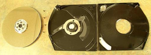| Keywords: Iomega jaz 1GB inside.JPG disassembled Iomega jaz cartridge There is a reflector like piece in the upper left hand corner of the right most piece The bottom left hand corner of the right most piece contains a small lint filter driven by airflow caused by the rotating platters Note the sliding door made of a thin soft metal strip It is attached to the lever locks the platters down when the door is closed thus there is no rattle 2007-03-05 own assumed TechieJustin~commonswiki Iomega Jaz | ||||