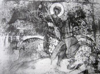 | Keywords: Iprari St. George.jpg en A fresco of St George by the Georgian painter Theodore Ipari Church of Archangel Svaneti Georgia ამირა აშვილი შ ქართული ხელ ვ ების ისტ რია -თბ 1971 Theodore 1096 PD-old-100 80px Frescos of Saint George History of Svaneti Theodore Iprari Church frescoes |
