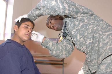 MAKE A MEME View Large Image Iraqi Army Takes Care of Locals' Health Issues DVIDS34072.jpg en Cpl Tony Goins medic Headquarters and Headquarters Company 2nd battalion 12th Cavalry regiment 1st Cavalry Division treats a local Iraqi boy at a school in Bakariya village ...