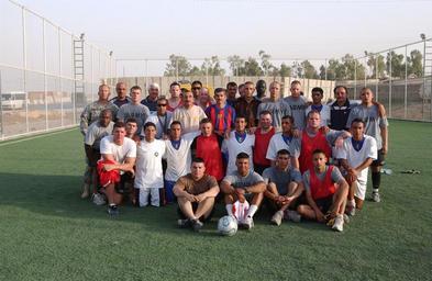 | Keywords: Iraqi Police win 4-3 in soccer against Soldiers DVIDS25311.jpg en On 4 July 06 the Coalition Forces Strykers decided to have a match of soccer against the Iraqi police of Nineveh Province the IP's win the victory 4-3 in Forward Operating Base Marez Mosul Iraq Photo by Spc Yolanda Moreno Leon 138th MPAD 2006-07-04 Spc Yolanda Moreno Leon https //www dvidshub net/image/25311 25311 2006-07-08 02 51 MOSUL IQ PD-USGov Forward Operating Base Marez Images from DoD uploaded by Fæ | ||||