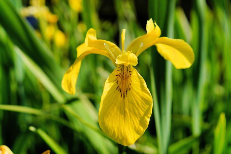 Keywords: iris flower blossom bloom swamp iris yellow iridaceae close