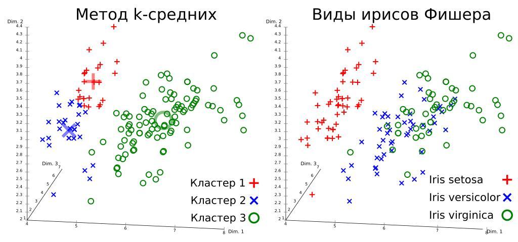 | Keywords: Iris Flowers Clustering kMeans ru.svg Iris flower data set clustered using k means left and true species in the data set right Note that k-means is non-determinicstic so results vary Cluster means are visualized using larger semi-transparent markers The visualization was generated using ELKI Iris flower data set mit dem k-Means-Algorithmus analysiert links und die wahren Spezien im Datensatz rechts Da k-means nicht deterministisch ist variieren die Ergebnisse Die Clusterzentren sind durch größere halbtransparente Markierungen eingezeichnet Visualisiert mit ELKI И исы Фише а класте изованные с помощью метода k-с едних слева и настоящие виды набо ов данных сп ава етод k-с едних не является дете мини ованным поэтому езультаты отличаются Цент ы класте ов отмечены с помощью к упных полуп оз ачных ма ке ов Визуализация была получена с помощью ELKI 2014-01-11 22 36 03 Iris_Flowers_Clustering_kMeans svg Chire other versions <gallery> Image Iris Flowers Clustering kMeans svg English <small> SVG </small> Image Iris_Flowers_Clustering_kMeans_de svg German <small> SVG </small> </gallery> Other fields ELKI 150 + cc-zero Uploaded with UploadWizard Cluster analysis K-means_algorithm Machine learning |