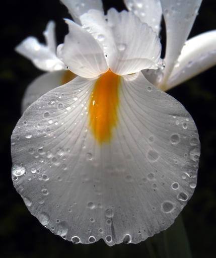 Keywords: iris petals flower spring white iris drops of water plant