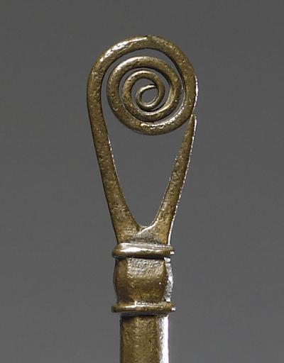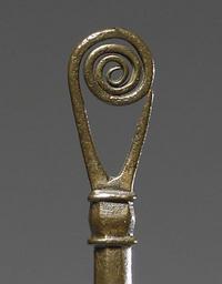 Keywords: Irish Celtic - Pin with Spiral Head - Walters 542340 - Detail.jpg This elegantly tapering bronze pin has an unusual finial made by dividing the stem at the head and curving one stem backward into a spiral Spiral-headed pins with two outward curling spirals have been found in Ireland and in 7th- and 8th-century Anglo-Saxon sites This example was found at Armagh Northern Ireland in 1886 Armagh was an important royal site from pre-historic times into the Christian era and from the mid-5th century AD onwards the See of Saint Patrick Ireland's patron saint century 6 8 Early Medieval bronze cm 22 7 1 2 0 6 accession number 54 2340 699 Found in Armagh Northern Ireland 1886 Robert Day Cork Ireland date and mode of acquisition unknown Robert Day Sale Sotheby Wilkinson Hodge London May 19-22 1913 no 355 William Randolph Hearst California Joseph Brummer Paris Joseph Brummer Sale Parke-Bernet New York May 11-14 1949 no 276 Walters Art Museum 1949 by purchase Museum purchase 1949 Objects of Adornment Five Thousand Years of Jewelry from the Walters Art Gallery Baltimore Cooper-Hewitt National Design Museum New York; Chrysler Museum of Art Norfolk; Carnegie Museum of Art Pittsburgh; San Antonio Museum of Art San Antonio; Philbrook Museum of Art Tulsa; Honolulu Academy of Arts Honolulu; New Orleans Museum of Art New Orleans; Milwaukee Art Museum Milwaukee; Minneapolis Institute of Arts Minneapolis; Toledo Museum of Art Toledo; The John and Mable Ringling Museum of Art Sarasota 1984-1987 Jewelry from the Walters Art Museum and the Zucker Family Collection The Walters Art Gallery Baltimore 1987 Jewelry - Ancient to Modern The Walters Art Gallery Baltimore 1979-1980 place of origin Padua Italy Walters Art Museum license Medieval metalwork in the Walters Art Museum Celtic jewellery Jewellery in the Walters Art Museum Celtic art |