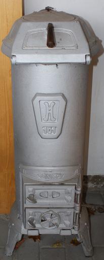 Keywords: Iron heating stove.JPG en Old iron heating stove from Bohemia cs Kamna Cenkov own Czech Photo Workshop - 2010/II Feťour 2010-11-07 Cast-iron stoves