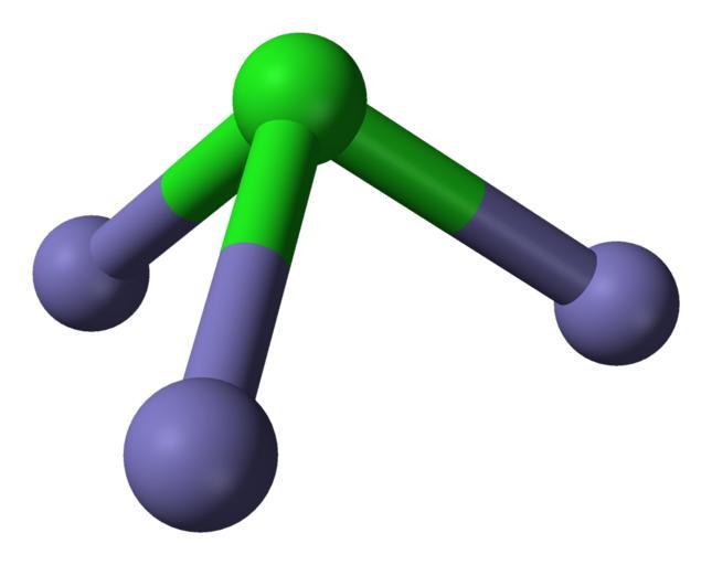 | Keywords: Iron(II)-chloride-xtal-Cl-coordination-3D-balls.png Ball-and-stick model of the coordination of Cl<sup> ˆ’</sup> by three Fe<sup>2+</sup> in the crystal structure of iron II chloride FeCl<sub>2</sub> X-ray crystallographic data from http //rruff geo arizona edu/AMS/download php id 10773 cif down text AMCSD originally from <small>R W G Wyckoff Crystal Structures 1 1963 Second edition Interscience Publishers New York 239-444 </small> Own 2009-03-05 Ben Mills Benjah-bmm27 Images by Ben Mills Iron II chloride |