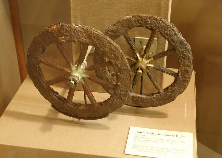 | Keywords: Iron wheels with bronze hubs - Nabu Temple, Palace of Sargon II, Khorsabad, Neo-Assyrian period, 721-705 BC - Oriental Institute Museum, University of Chicago - DSC07574.JPG en Exhibit in the Oriental Institute Museum University of Chicago Chicago Illinois USA This work is old enough so that it is in the public domain Photography was permitted in the museum without restriction 2014-08-22 15 32 22 own Daderot other versions cc-zero Uploaded with UploadWizard Nabu Temple Oriental Institute Museum Metalwork of Mesopotamia in the Oriental Institute Museum Ancient wheels |