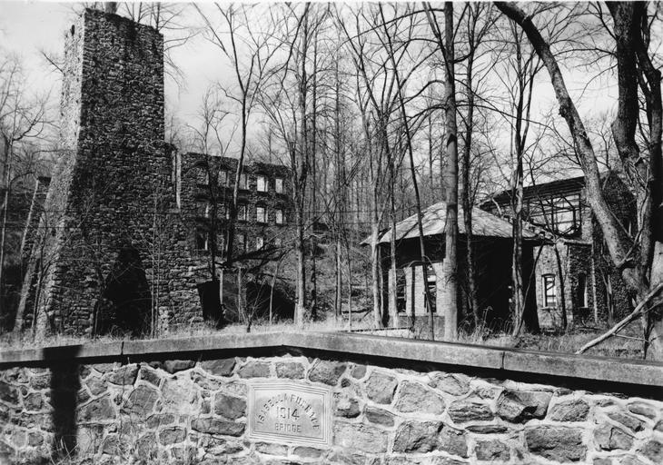 | Keywords: Isabella HABS 132492pu.jpg 91001135 Historic American Buildings Survey Historic American Buildings Survey ”HABS image http //hdl loc gov/loc pnp/hhh pa0353 HABS at LOC Ned Goode HABS photographer 1959-04 Ned Goode Photographer April 1959 EAST FRONT OF FURNACE WITH OTHER STRUCTURES IN BACKGROUND - Isabella Furnace Bollinger Drive West Nantmeal Township Wyebrooke Chester HABS PA 15-WYBRO V 1-1 tif 40 6 48 N 75 49 23 W HABS PD-USGov ImageNote 1 371 78 837 2163 4435 3111 2 Furnace stack ImageNoteEnd 1 ImageNote 2 1247 987 687 776 4435 3111 2 Wall of crusher house per 1890 Hexamer survey ImageNoteEnd 2 ImageNote 3 2539 1370 1042 882 4435 3111 2 Store supplies per 1890 Hexamer survey ImageNoteEnd 3 ImageNote 4 3587 1198 771 1020 4435 3111 2 Enginehouse for blowing engines per 1890 Hexamer survey ImageNoteEnd 4 Isabella Furnace 1959 in Pennsylvania Historic American Buildings Survey of Pennsylvania Black and white photographs of Pennsylvania |