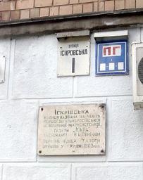 Keywords: Iskrivska street.jpg en Plaque describing the name of the street; Iskrivska street Kyiv Ukraine 2014-08-11 01 57 20 own Holawhisper 50 4355 30 4583 cc-zero Uploaded with UploadWizard Plaques in Kiev