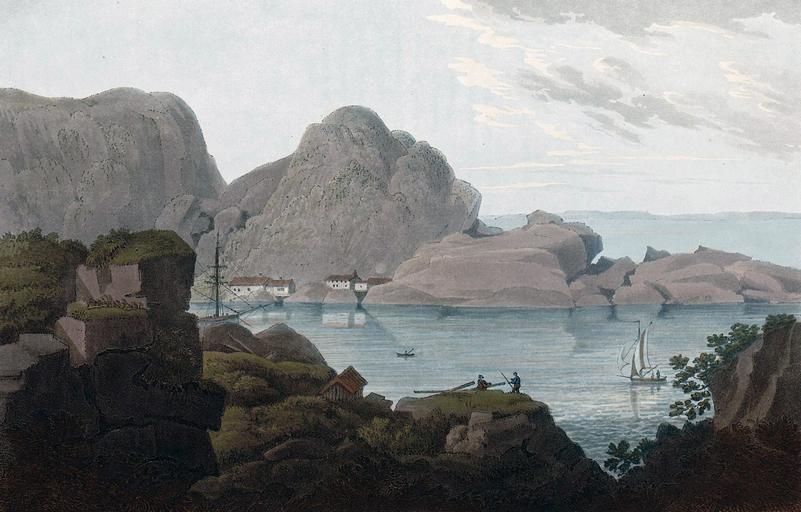 | Keywords: Islands of Heliesund and Hellisöe (plate 03).jpg Artwork Creator John William Edy en Islands of Heliesund and Hellisöe No III A VIEW OF THE SCENERY WHICH THE ISLANDS OF HELLISÖE AND HELIESUND PRESENT FORMING THE INNER HARBOUR The peculiar features which distinguish this View are not only bold and striking but at the same time pleasing and convey an idea of the rocks in the islands near the main land particularly those in the centre of the picture situated in Hellisöe ; their smooth round and bald heads precipices and fragments are generally picturesque and form delightful objects for the pencil The entrance of this harbour is about fifty yards wide but contracts within so as to suflfer only one ship at a time to go through The fore-ground is part of the Island of Heliesund which in itself is a most charming spot furnished with a variety of objects and commanding a beautiful view of the great harbour and adjacent islands Collapse bottom http //urn nb no/URN NBN no-nb_digibok_2011072910001 Boydell's picturesque scenery of Norway London 1820 Plate no 3 p 69 in scanned copy no-nb_digibok_2011072910001 PD-Art-100 John William Edy Boydell's picturesque scenery of Norway Søgne |