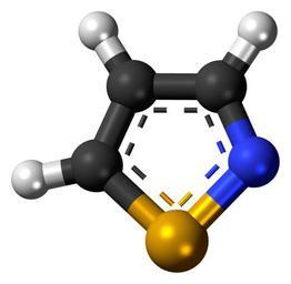 | Keywords: Isoselenazole-3D-balls.png Ball-and-stick model of the isoselenazole molecule a heterocycle Colour code 505050 Carbon C black<br> F0F0F0 Hydrogen H white<br> 3C50FA Nitrogen N blue<br> EBB400 Selenium Se yellow-brown<br> 2011-06-01 own DS Visualizer Jynto talk Space-filling version cc-zero Selenium heterocycles Azoles Simple aromatic rings Images by Jynto Ball-and-stick models | ||||