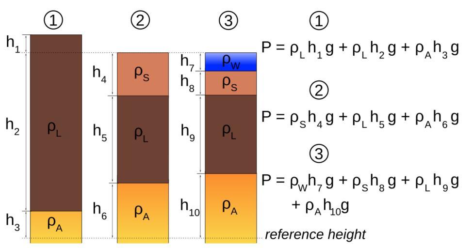 | Keywords: Isostatic equilibrium EN.svg en Schematic representation of the principle of isostatic equilibrium in geodynamics The three situations in the figure are 1 a mountain range or plateau; 2 a totally filled basin surface is at sea level ; 3 an underfilled basin with sea water forming the top part of the column The formulas to the right give the lithostatic pressure at reference height Symbols used ρ<sub>L</sub> density of the lithosphere; ρ<sub>A</sub> density of the asthenosphere; ρ<sub>S</sub> density of the sediments in the basin; ρ<sub>W</sub> density of sea water The heights of different sections of the columns are represented by a letter h; while g is the gravitational acceleration In the case of isostatic equilibrium the lithostatic pressure should be equal for all three cases at the reference height in formula P<sub>1</sub> P<sub>2</sub> P<sub>3</sub> own Woudloper 2009-04 Dutch language version <gallery><center> File Isostatic equilibrium NL svg </gallery></center> Isostasy Lithospheres Geophysical diagrams |