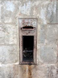 | Keywords: Israel Batch 1 (867).JPG Abandoned George V wall-mounted cast-iron post box in the Muslim quarter of Old Jerusalem at the corner of Al Wad Ha-Gai and Via Dolorosa in front of the Austrian Hospice GR is the royal cypher of Georgius Rex King George V info own 2011-07-29 18 08 05 User Mattes 31 780079 35 231947 heading N GPS data may be inaccurate EXIF data regarding date and time may be inaccurate Commonist FoP-Israel Abandoned mailboxes Austrian Hospice in Jerusalem Jerusalem in British Mandate King George V post boxes Post boxes in the British Mandate of Palestine Post boxes in Israel Rusty objects Wall mounted post boxes Taken with Sony DSC-HX5VN Work by Mattes 2011 User Mattes/Contributions/Topics/Israel User Mattes/Contributions/Topics/Miscellaneous Haguy street |