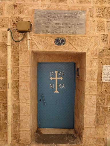 | Keywords: Israel Batch 1 (92).JPG Greek Orthodox Patriachate - St Michael Monastery Jaffa blue metal door with letters; plaque with inscriptions in Greek English and Arabic; house number 8 ΙϹΧϹ ΠΙΚΑ means Jesus Christ Conquers l'inscription ICXC NIKA signifie Jésus Christ vainc own 2011-07-26 15 48 12 User Mattes 32 0548813889 34 75204 Old City of Jaffa 8 Netiv HaMazalot door with a cross GPS data may be inaccurate EXIF data regarding date and time may be inaccurate Commonist FoP-Israel S Michele in Giaffa Doors in Israel Jaffa 8 house number Trilingual signs in Israel Jerusalem Blue doors House numbers in Israel Closed doors Metal doors House signs in Israel Signs of Western astrology IC XC Taken with Sony DSC-HX5VN Work by Mattes 2011 User Mattes/Contributions/Topics/Israel User Mattes/Contributions/Topics/banners coat of arms flags logos seals and signs User Mattes/Contributions/Topics/Buildings and structures Netiv HaMazalot Crosses in Israel ImageNote 1 1277 851 407 359 2736 3648 2 8 Netiv HaMazalot ImageNoteEnd 1 |